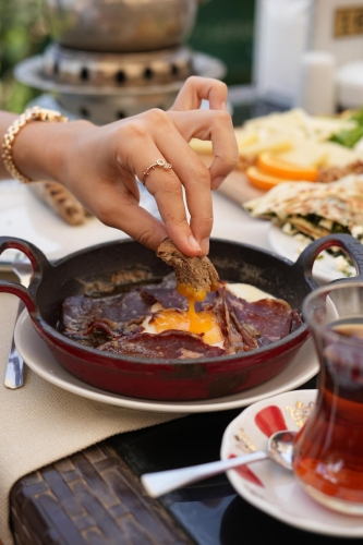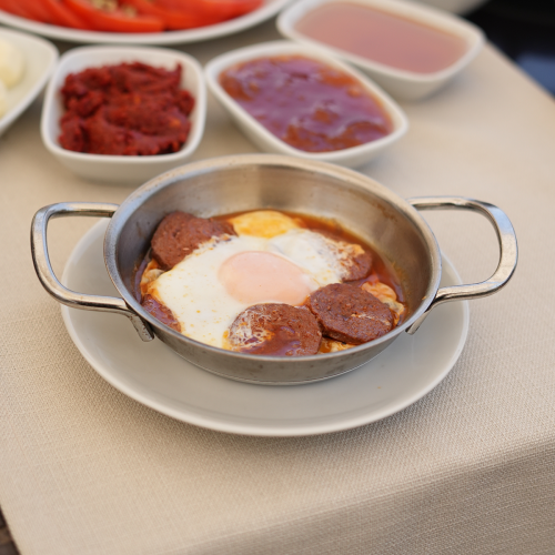 SERPME KAHVALTIMIZ KİŞİ BAŞI OLARAK ORTAYA SERVİS EDİLMEKTEDİR. 🥚 Trabzon tereyağında sahanda yumurta 🧀 Acılı peynir long 🥩 Sahanda sade kasap sucuk 🥐 Pişi 🔥 Odun ateşinde pişmiş biber kavurma 🧀 Teneke beyaz peynir, tulum peyniri, Keçi peyniri 🫒 Yeşil & siyah zeytin 🌰 Cevizli Antep çemen 🍯 Ayva reçeli veya Balkabağı reçeli 🍯 Erzurum çiçek balı & kaymak 🧈 Trabzon tereyağı 🥗 Söğüş tabağı 🥖 Kızartılmış köy ekmeği 🍵 Sınırsız semaver çay